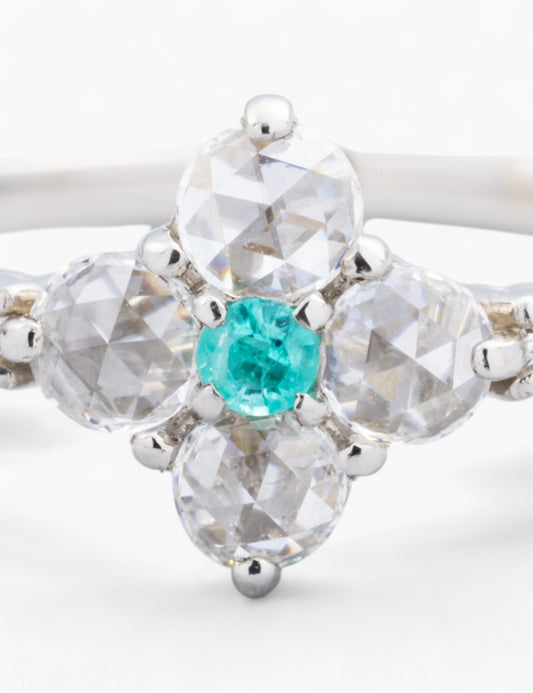 Pt900 パライバトルマリン×ローズカットダイヤモンド リング
